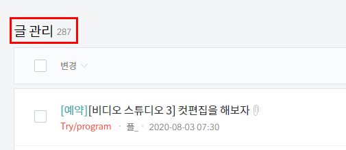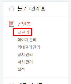 포스팅 수는 블로그 관리 페이지에서 왼쪽 메뉴 콘텐츠> 글 관리로 들어오시면