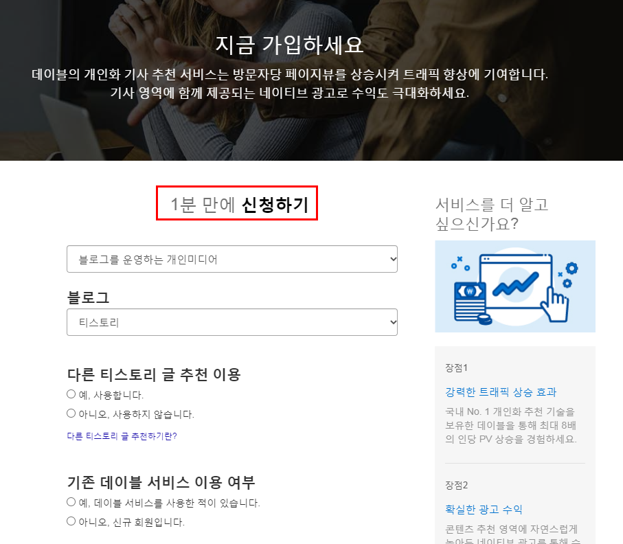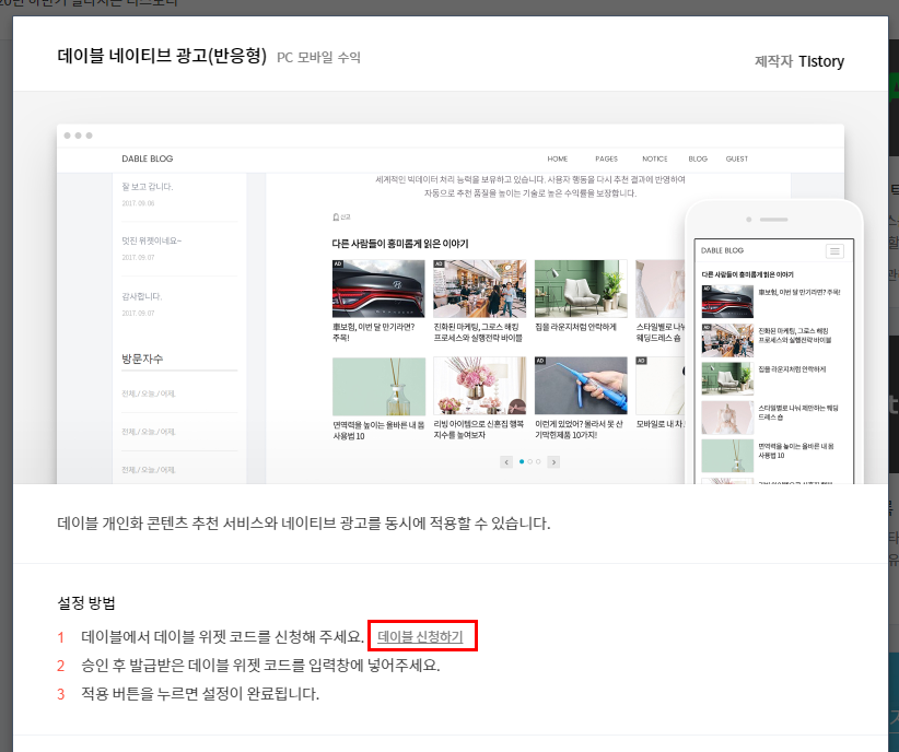 오늘은 데이블 네이티브 광고에 가입해볼 거예요.