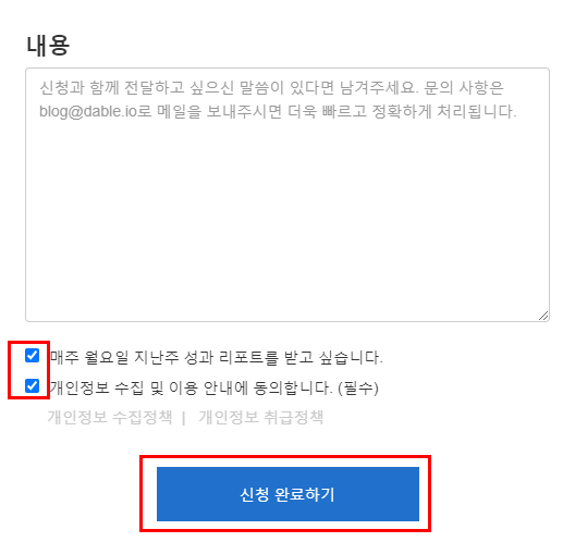 저는 내용은 건너뛰고 아래 두 가지 체크사항은 모두 체크했어요.