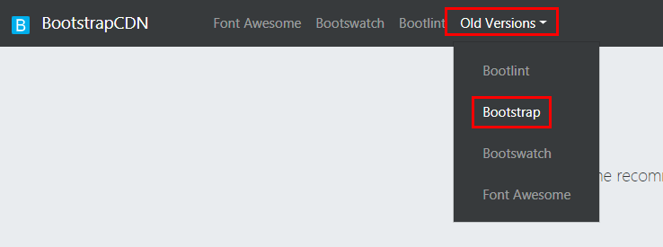 부트스트랩 3을 사용할 예정이니 메뉴에서 Old Versions(옛날 버전) > Bootstrap(부트스트랩) 메뉴를 선택해주세요.