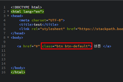 아무튼 <a> 태그에 class(클래스)를 넣어서 부트스트랩을 적용해줍니다.