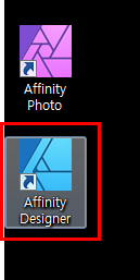 바탕화면에 보시면 어피니티 디자이너가 설치된 것을 알 수 있으실 거예요. 더블클릭으로 프로그램을 실행시켜주세요.