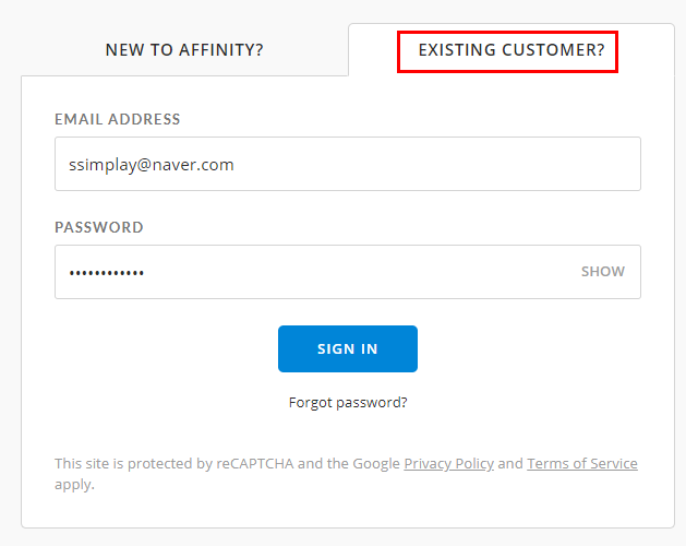 저는 어피니티 포토도 구매했는데 그때 만든 계정으로 들어가 볼게요.