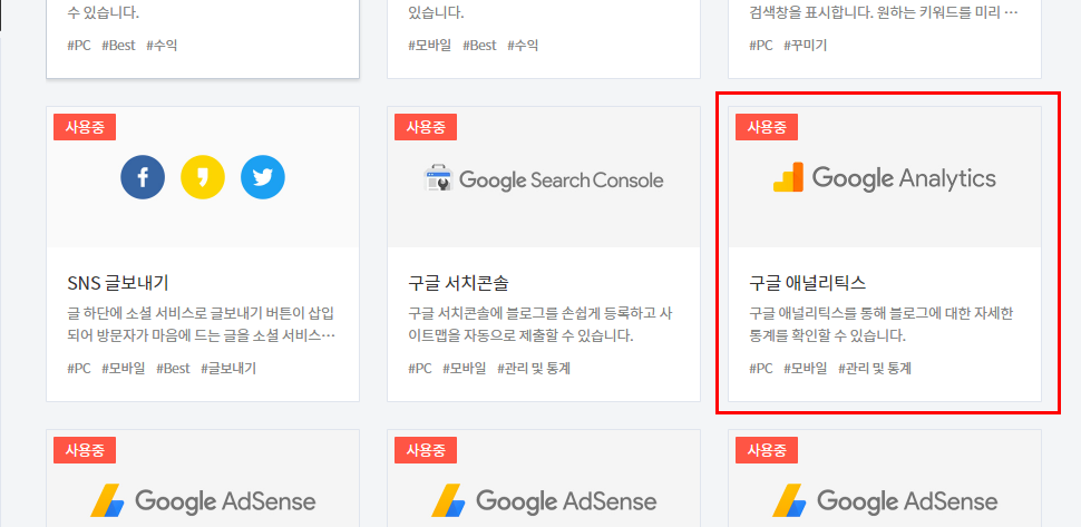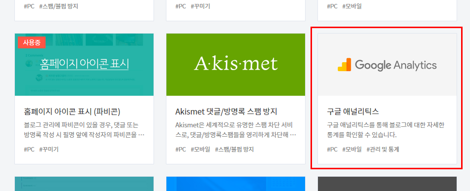 그리고 스크롤을 쭉 내리다 보면 있는 구글 애널리틱스를 선택해주세요.