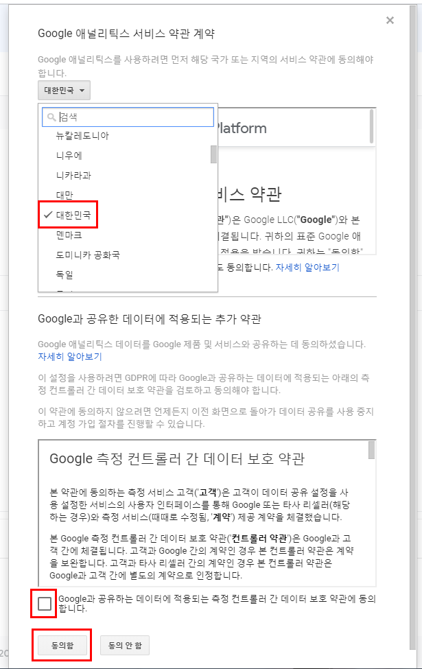 나라를 대한민국으로 설정해주시고 동의를 눌러주세요.