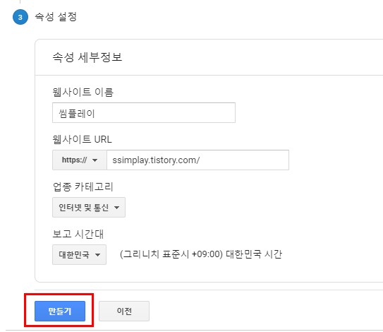 속성 세부 정보로 넘어오면 티스토리의 세부 정보를 입력할 수 있어요.