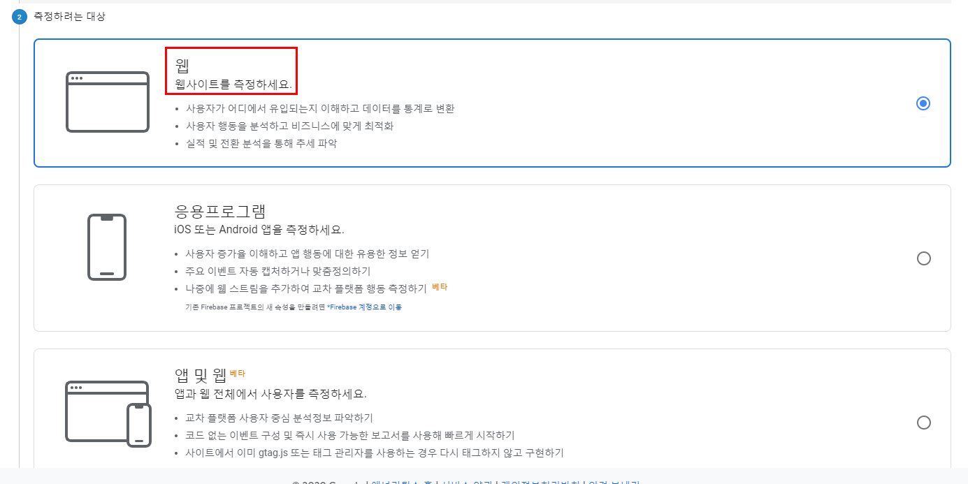 티스토리는 웹사이트니까 가장 위에 있는 웹을 선택해줍니다.