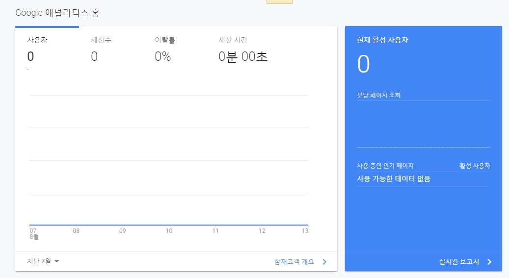 다시 애널리틱스로 들어가 보시면 이렇게 분석된 결과를 보실 수 있을 거예요.
