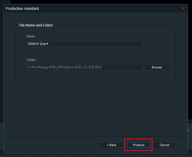 원하시는 이름과 경로를 지정하고 Produce 버튼을 눌러주세요.