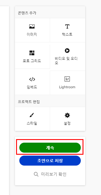 오른쪽 메뉴에서 계속을 눌러줍니다.