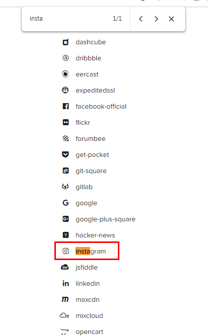 저는 인스타그램 아이콘이 필요하니까 인스타를 검색해줬어요. 검색은 Ctrl + F를 누르시면 할 수 있어요!