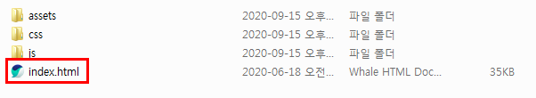 테마를 다운로드하고 압축을 풀어주시면 index.html 파일이 있을 거예요. 이게 바로 홈페이지가 시작하는 페이지예요.