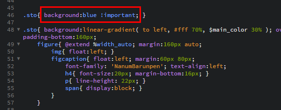 예를 들어 구매한 템플릿에서 css를 아무리 봐도 못 찾을 때 이 !important를 사용합니다. 약간 꼼수 같은 거죠.