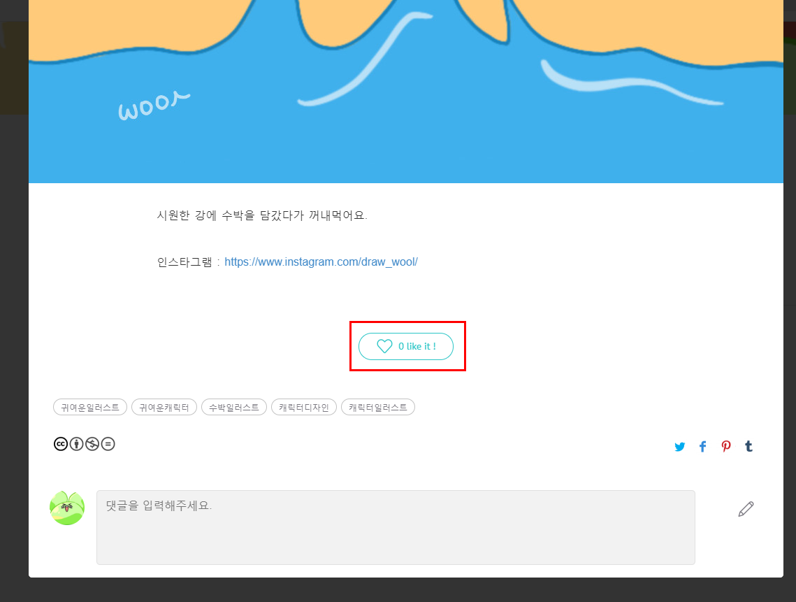 이렇게 쭉쭉 아래로 내리면 좋아요랑 댓글을 남기는 란이 있어요.