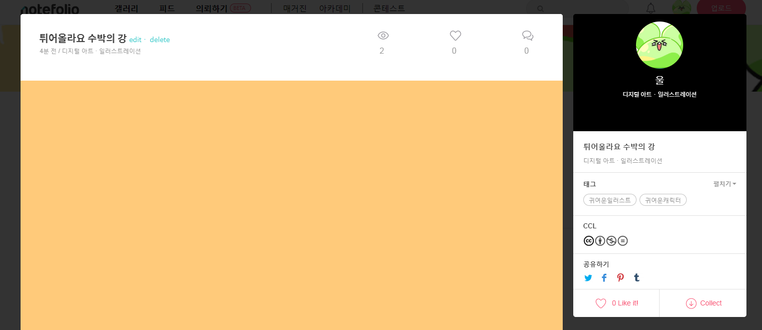 이렇게 작품이 크게 뜨고 뷰수와 하트 댓글을 남길 수 있어요.