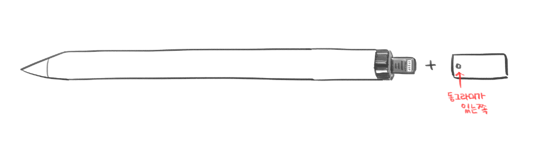 이걸 이렇게 동그라미가 있는 쪽이 애플 펜슬에 오게 꽂아주세요.
