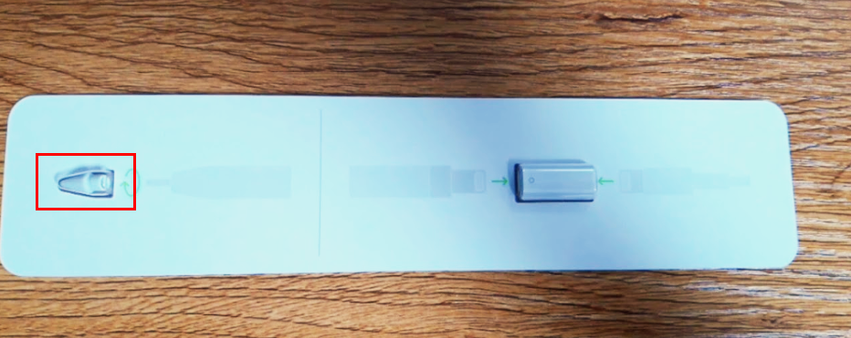 이 네모난 아이를 꺼내 줍니다. 얘는 애플 펜슬을 충전단자에 꽂을 수 있는 친구예요.