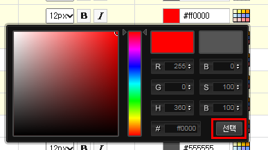 팔레트아이콘을 누르면 이렇게 색상을 변경할 수 있는 창이 뜹니다.