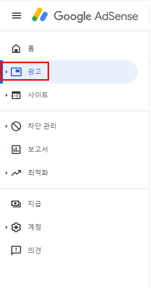 그리고 애드센스 왼쪽 메뉴에서 광고를 클릭해주세요.