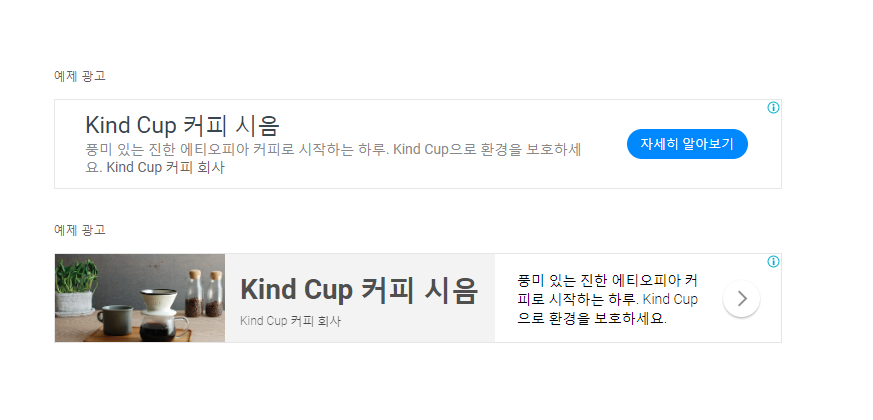 그러면 이렇게 예제 광고가 뜹니다.