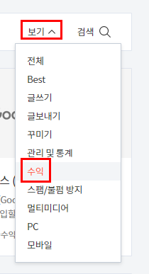 플러그인 페이지에 들어왔다면 오른쪽에 보이는 보기 버튼을 선택해서 나오는 메뉴 중 수익을 눌러주세요.