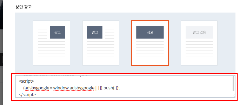 아까 티스토리의 애드센스 플러그인에서 코드를 넣는 상자가 있었죠.