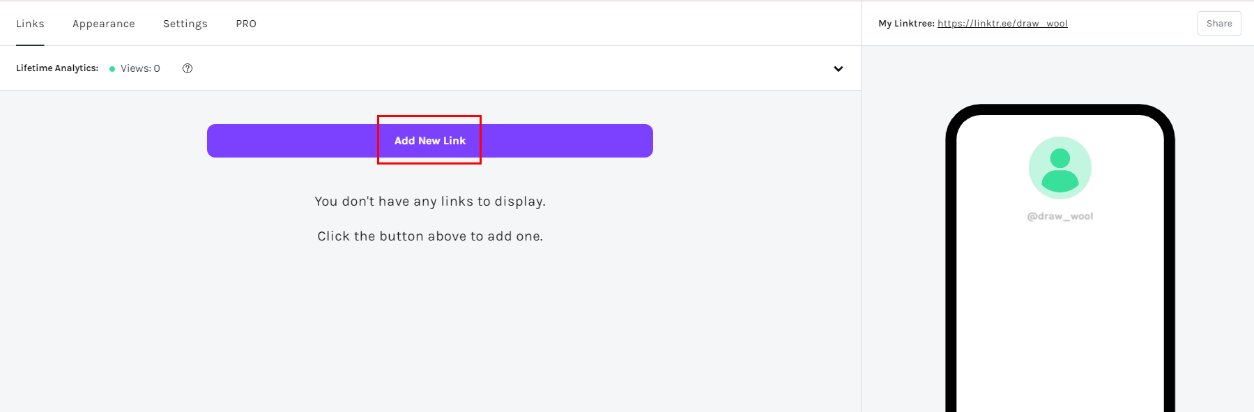 자, 겁먹지 말고 보라색 Add New Link 버튼을 눌러서 링크를 추가해봅시다.