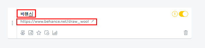 버튼을 누르면 링크 이름과 링크 주소를 넣을 수 있는 창이 떠요. 이름과 주소를 입력해주시면 됩니다.