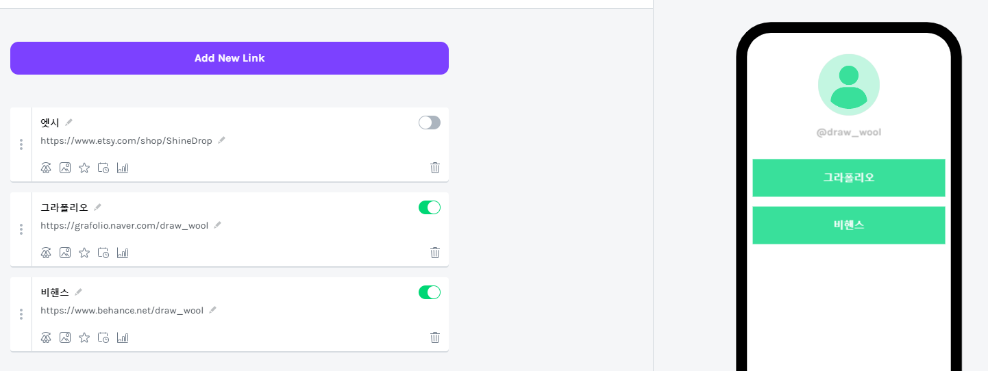 비활성화를 하면 미리보기에 나오지 않죠? 이런 식으로 링크를 여러 개 올리고 관리하면 편할 거 같아요.