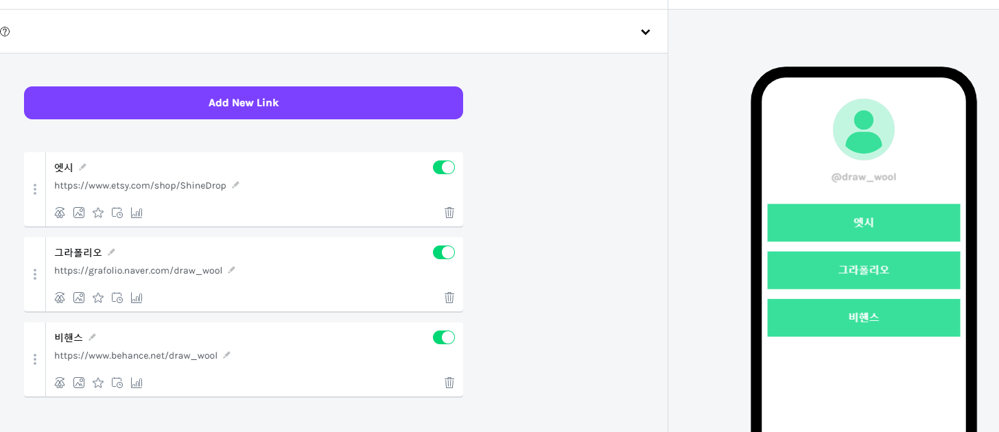 뭔가 복잡해 보이는 페이지지만 링크를 추가하면 오른쪽 모바일 모양 화면에 미리보기가 뜨는 거예요.