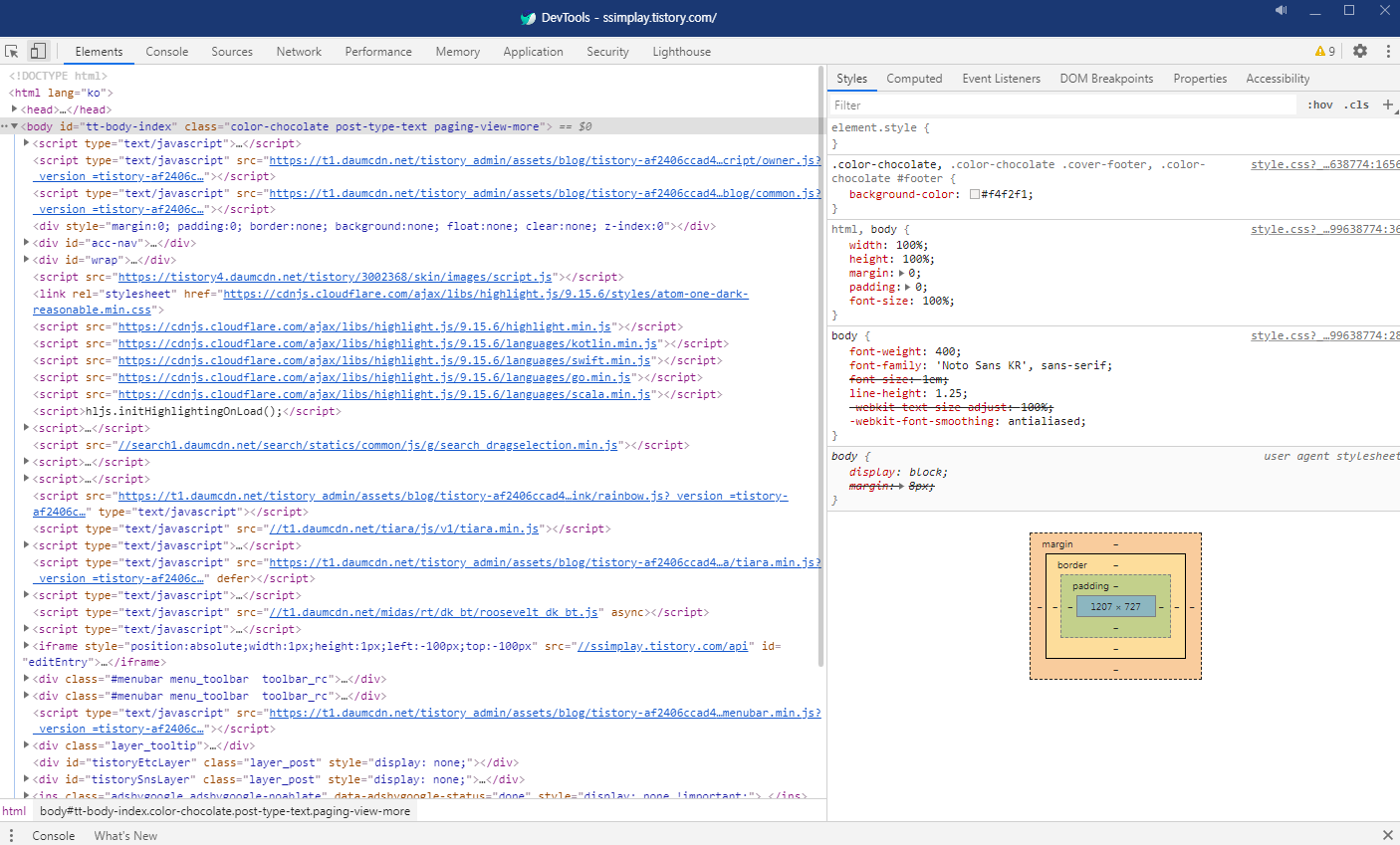 그러면 이런 개발자 도구 창이 뜨는데요. 오늘은 이 창을 자세히 볼 필요는 없습니다.