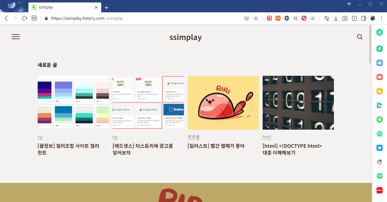브라우저의 오른쪽 끝을 잡고 움직여보면 브라우저 사이즈가 변동되는 걸 볼 수 있으실 거예요.