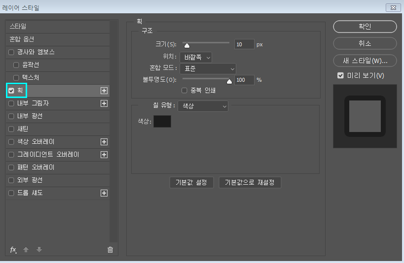 레이어 스타일로 효과를 주었습니다.