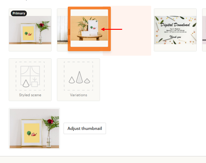 가장 처음 올린 썸네일이 엣시 페이지에서 제일 먼저 보여요. 그러니 맨 앞에 제일 예쁜 걸 올려줍시다.