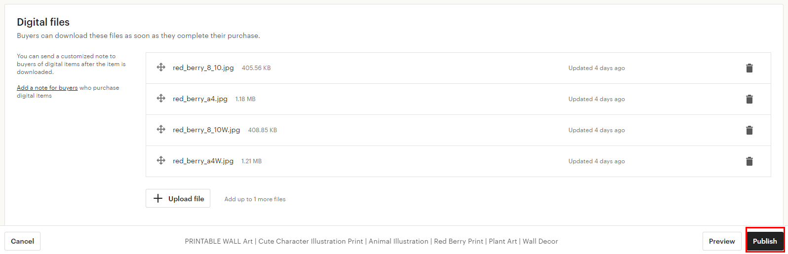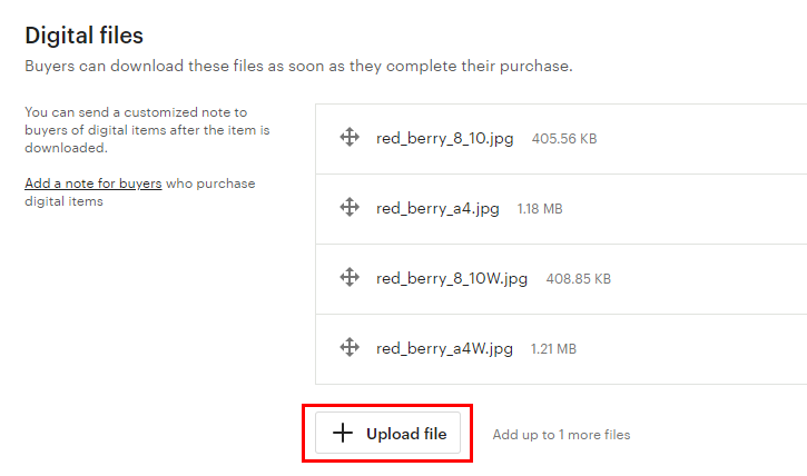 판매할 디지털 파일을 업로드해주세요. 저는 낱개로 올렸는데 용량이 크다면 구글 드라이브를 이용하시거나 압축파일로 올려주시면 됩니다.