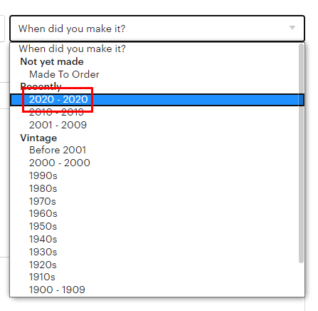 여기는 언제 만들었는지 선택하는 거예요. 저는 최근에 만든 거니까 2020년도를 선택할게요.