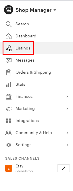 샵 매니저에 들어오면 Listings이라고 쓰여있는 리스팅 메뉴가 있어요.