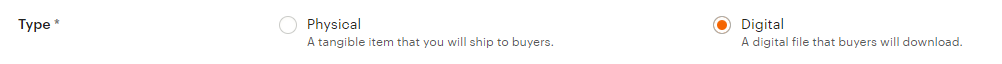타입은 Physical과 Digital이 있는데요, Physical은 배송할 물건이냐는 뜻입니다.
