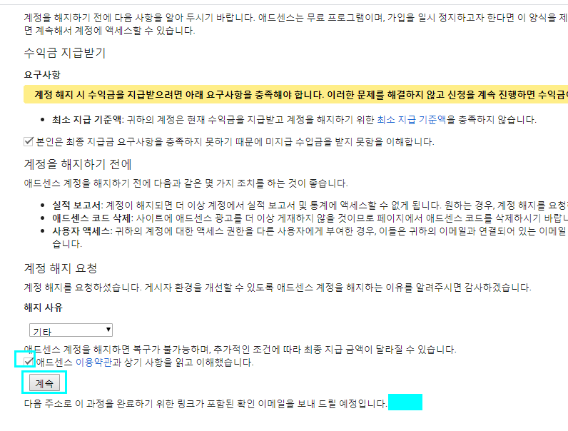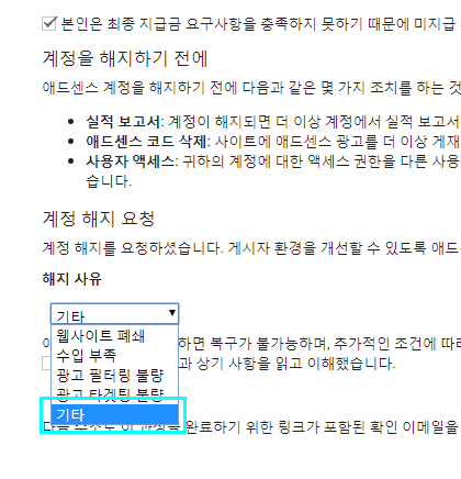 이렇게 애드센스 계정 해지가 완료되었습니다.