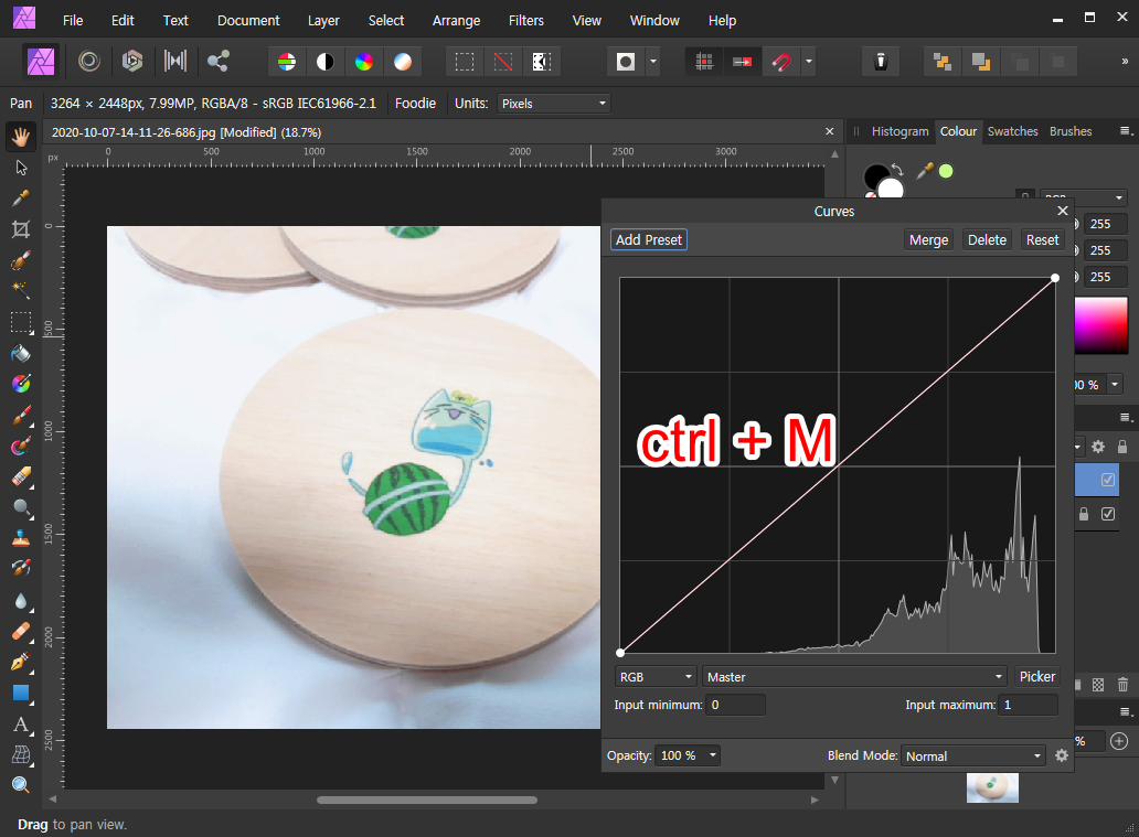 음식 보정 때도 썼었죠? 곡선을 위로 움직여줍니다.