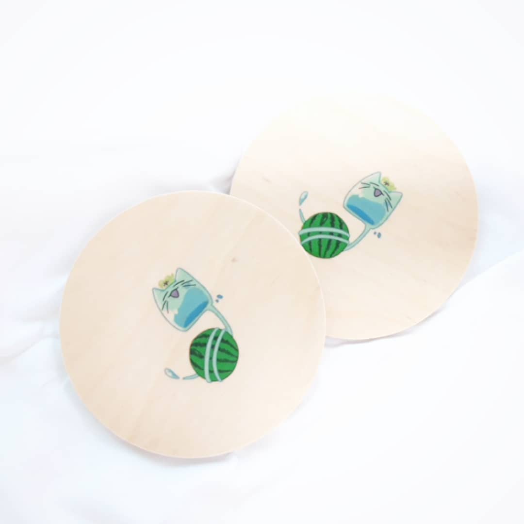 경품으로 드리는 튀어오르는 비비가 그려진 코스터입니다. 위쪽에는 작게 치치도 있어요.