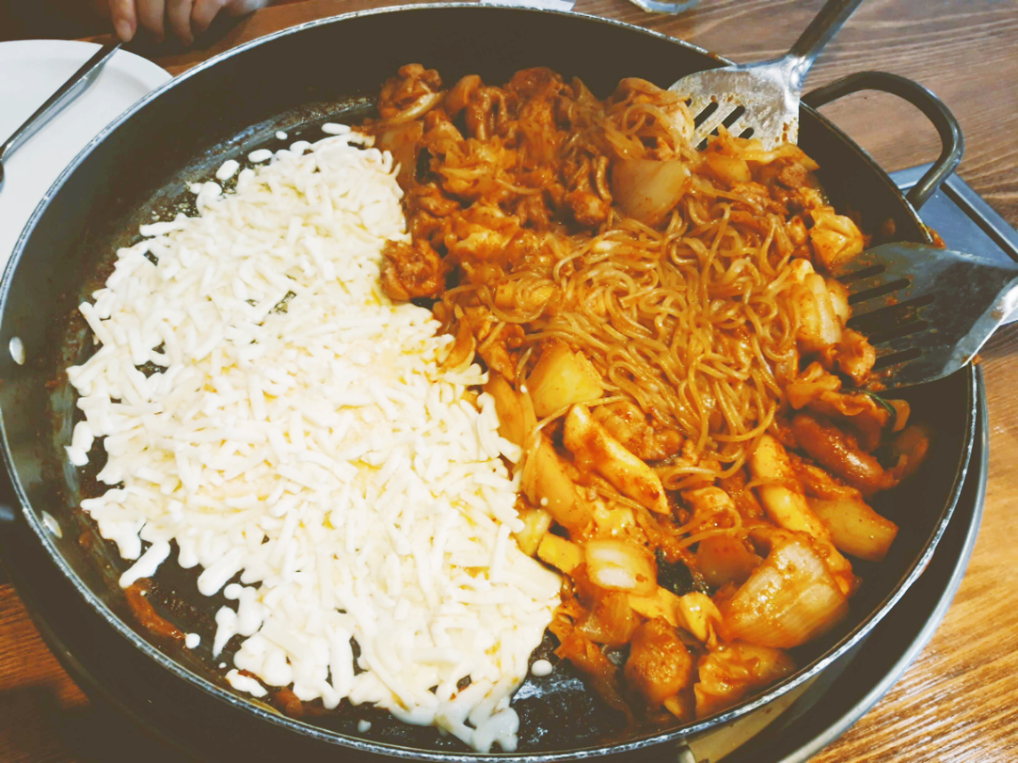 이름이 치-치-치즈 닭갈비라고 쓰여있는데 치즈가 3종류 들어가서 그런 게 아닐까 생각해봅니다.