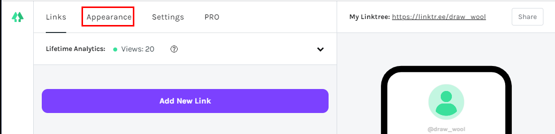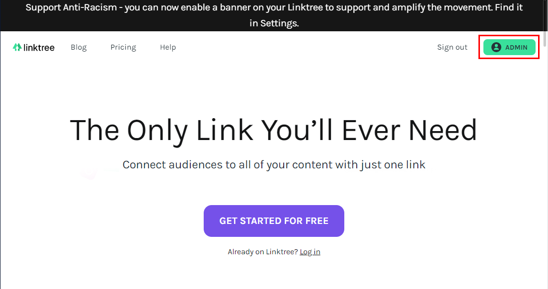 링크트리에 접속하면 오른쪽 위에 ADMIN이라고 쓰여있는 녹색 버튼이 보이실 거예요.