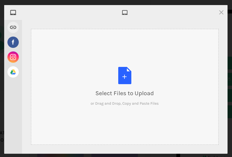 그러면 이렇게 이미지를 업로드할 수 있는 창이 뜰 거예요. 인스타그램에서 가져올 수도 있고 내 컴퓨터에서 올릴 수도 있어요. 원하시는 방법으로 이미지를 올려주세요.