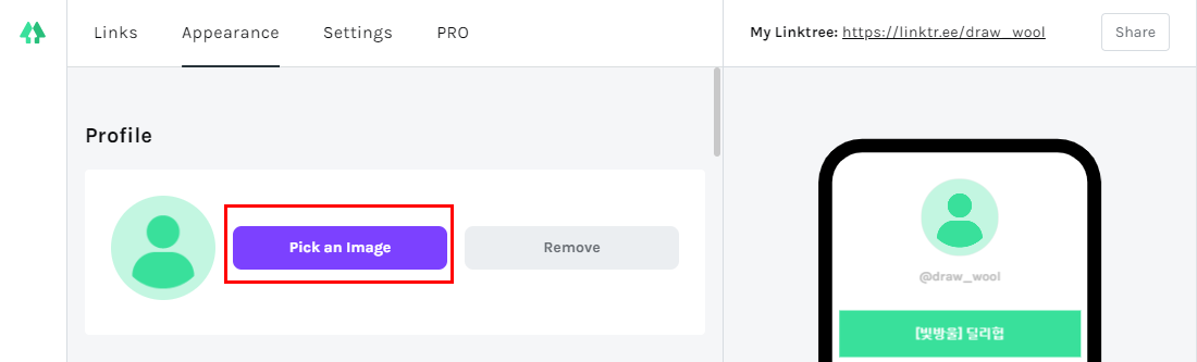 강렬하게 눈에 들어오는 보라색 버튼인 Pick an Image를 눌러줍시다.