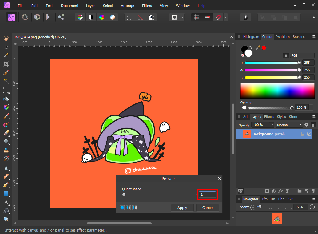 어피니티 포토로 모자이크 처리를 해볼게요.