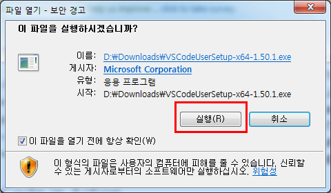 설치 파일을 다운로드하였다면 이제 본격적으로 다운로드를 해봅시다. 창을 열고 실행을 눌러줍니다.
