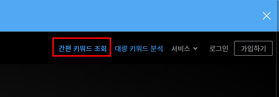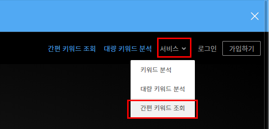 상단 메뉴에서 서비스 > 간편 키워드 조회를 클릭합니다.