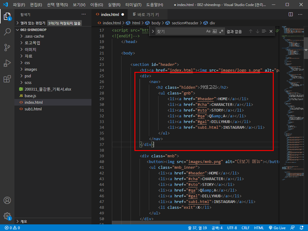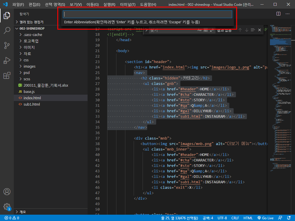 vs code에서 단축키를 이용해 래핑을 해보겠습니다.
