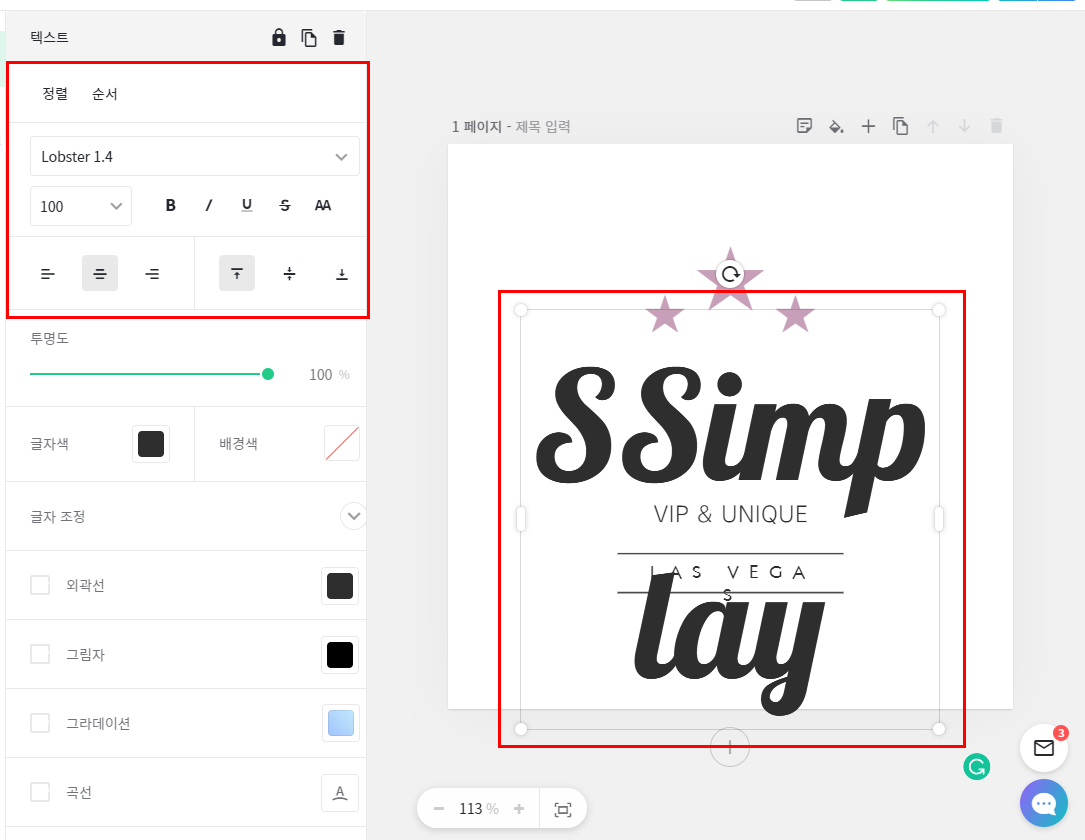 제작 페이지로 넘어왔습니다. 바꾸고 싶은 글씨를 선택하신 뒤 원하는 문구로 바꿔줍니다.